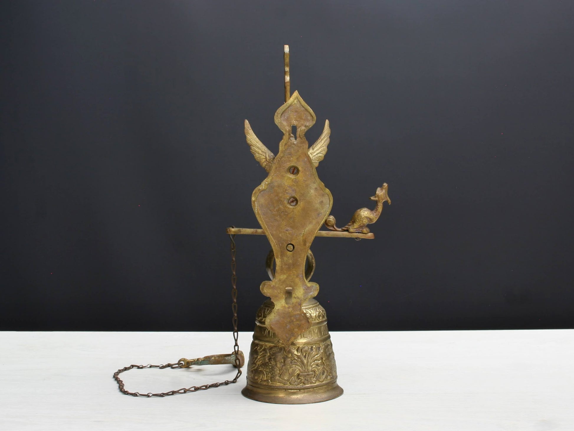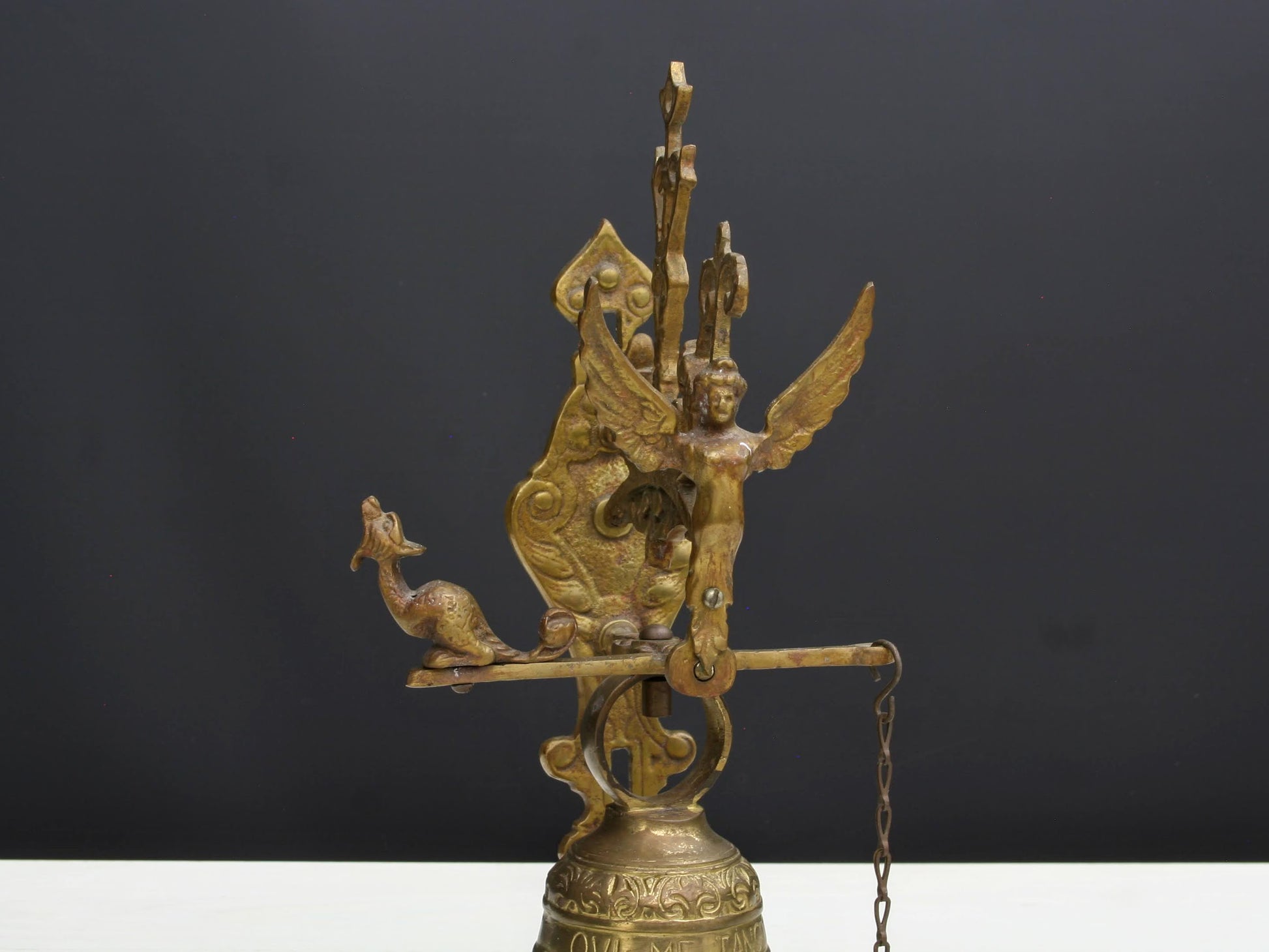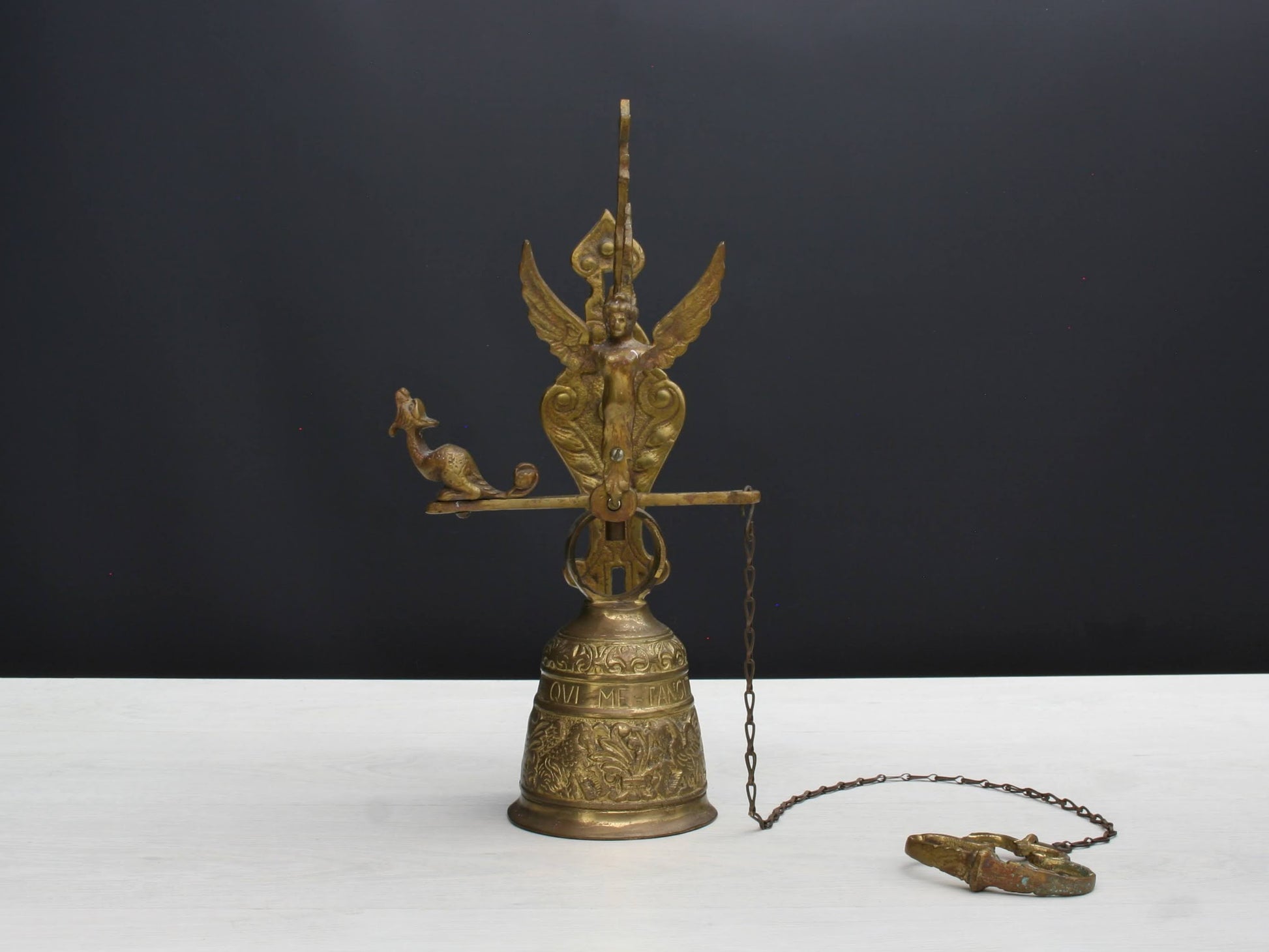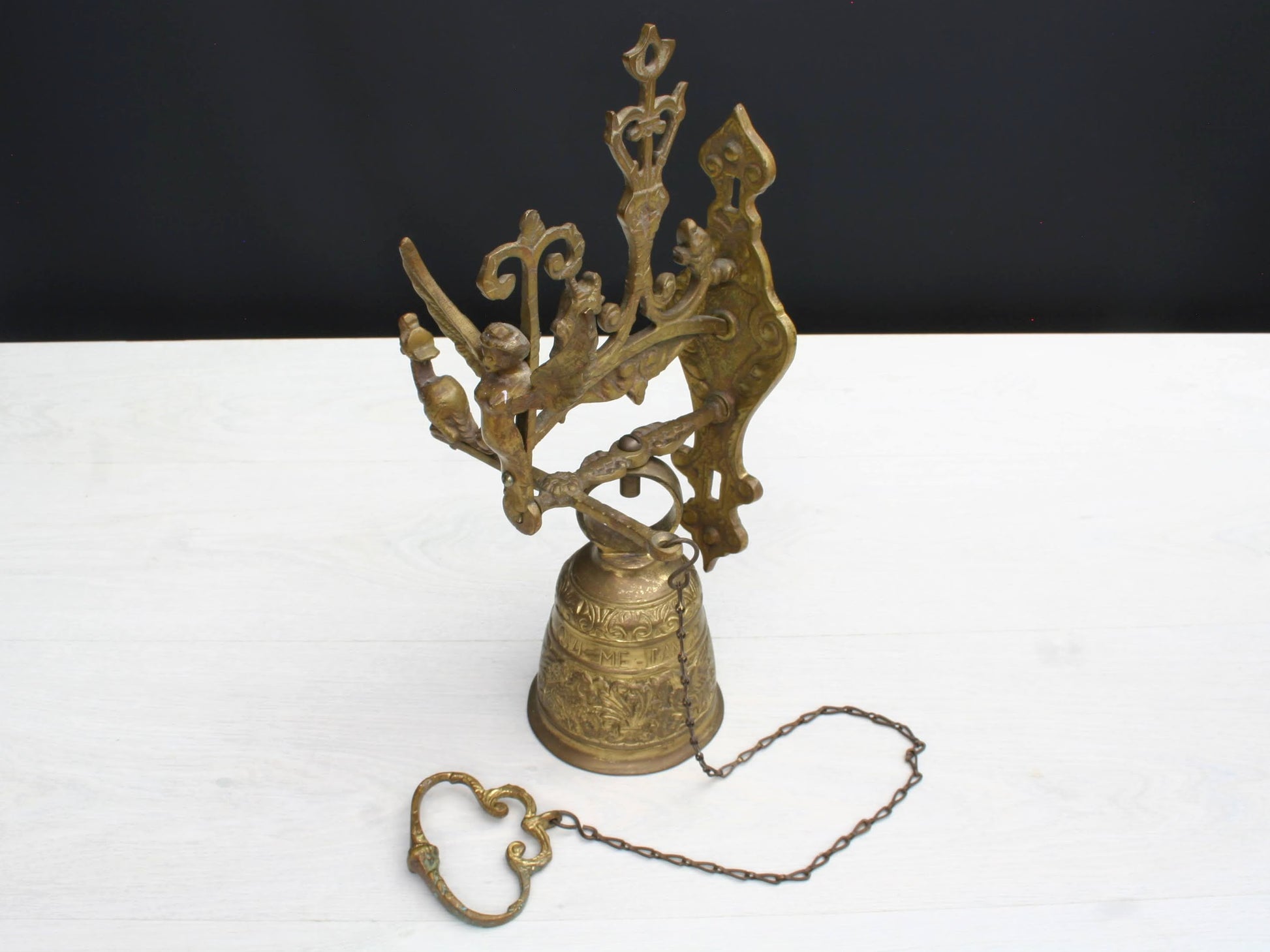 The condition of this bell is good with no major damage or repairs. It does have natural wear like patina, scratches, and discoloration that you would expect in vintage and antique pieces. See detailed pictures