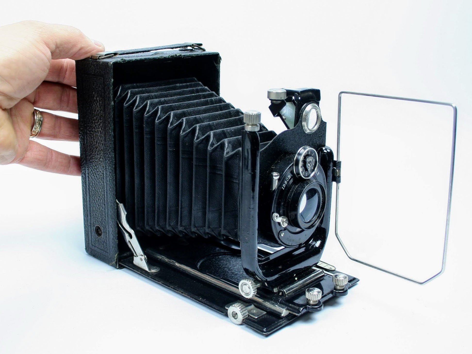 This folding camera has not been tested and is not guaranteed to work. It does open, close, and slide fine. The camera is estimated as early 20th century around the 1920s.